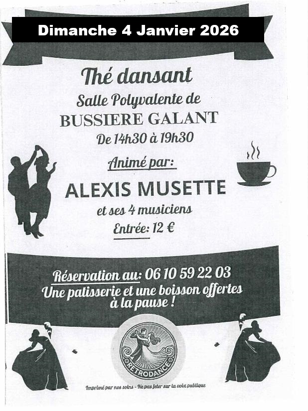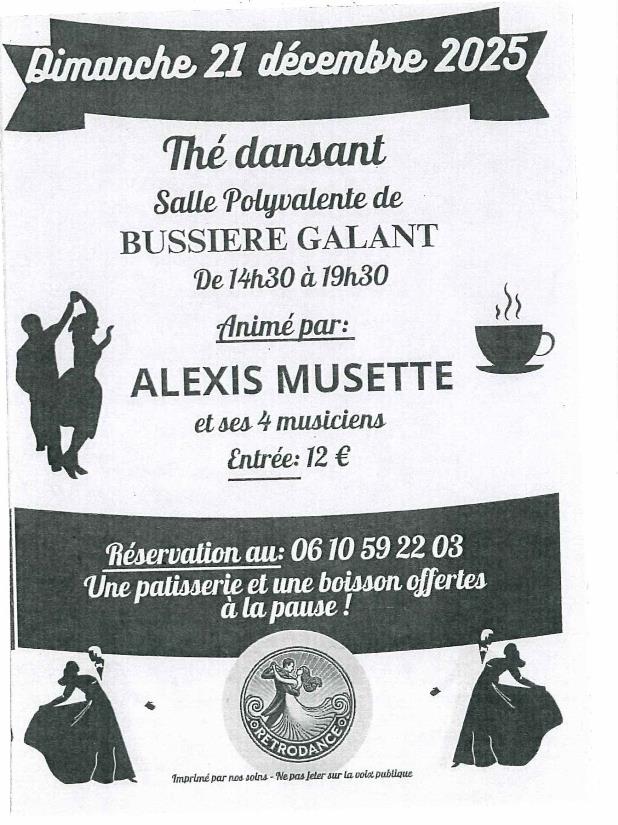 Galant (87) 14h30 salle polyvalente , thé dansant organisé par l'Ass
