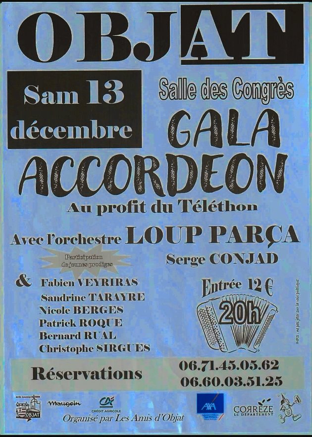 Objat (19) salle des congrés gala d'accordéon au profit du téléthon Affiche