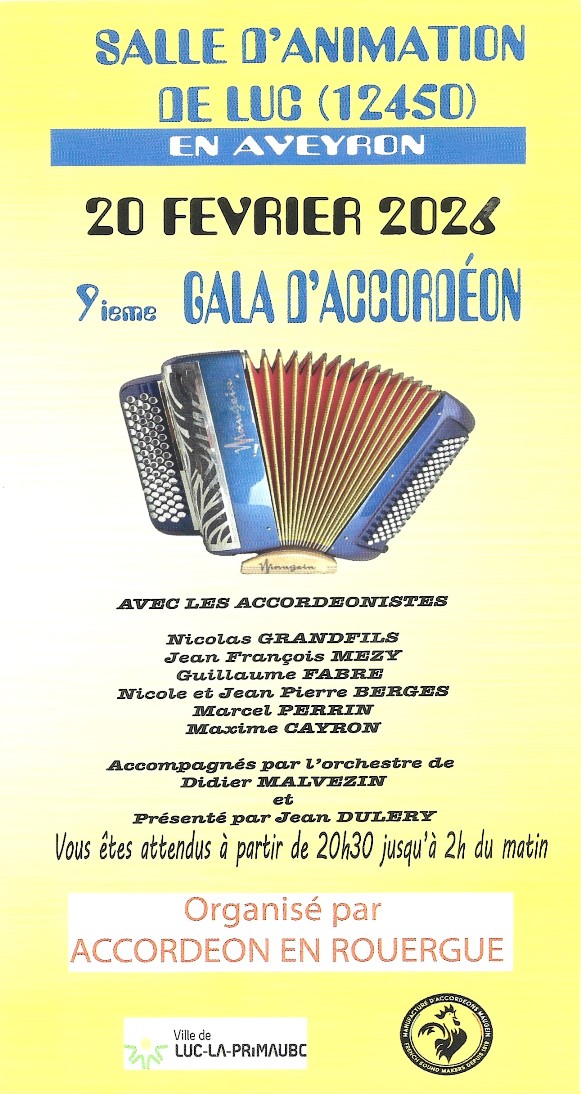 LUC-LA-PRIMAUDE 12450 salle d'animation de Luc en Aveyron 20 Février 2026 , 9ème gala d'accordéon