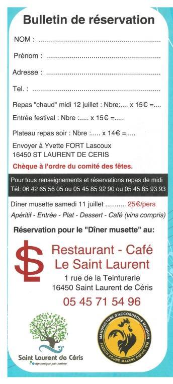 St Laurent de Ceris (16) 10/11/12.Juillet Affiche Programme pour réserver