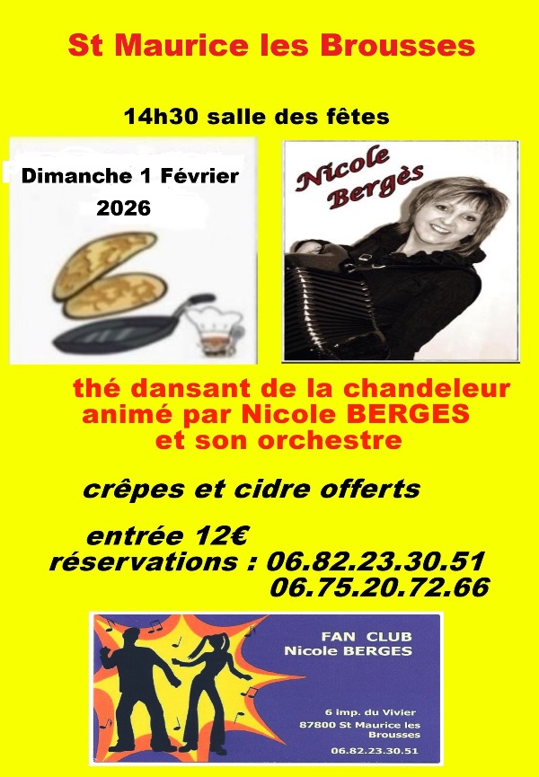 St Maurice les Brousses(87) 14h30 salle des fêtes ,
